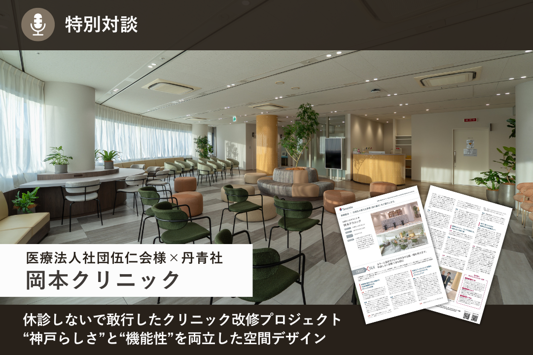 当院リニューアル内容が、㈱丹青社様の事例として紹介されました 2025.12.17 今年度(2025年5月オープン)に実施しました 当院リニューアルについて ㈱丹青社様の事例として紹介されました。 ↓紹介記事はこちら(PDF)↓ 休診しないで敢行したクリニック改修プロジェクト “神戸らしさ”と“機能性”を両立した空間デザイン 画像提供:丹青社 撮影:高橋 海[mapo.]